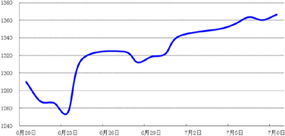 上周,因投资者对英国退欧公投后全球金融市场的前景担忧未减,避险情绪的升温继续推升国际金价,周五收于1366.40美元/盎司,较前一周上涨1.83%。