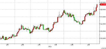 图2 国际现货白银走势图(单位:美元/盎司)
