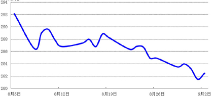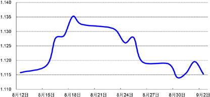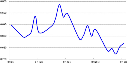 上周初,受美联储主席耶伦在杰克逊霍尔央行年会上偏鹰派讲话的影响,美元上涨,人民币对美元价格承压,并触及近一个月低位,随后,人民币对美元价格处于低位震荡,周五收于6.68,当周微跌0.18%。