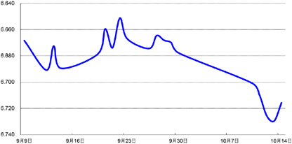 因十一期间国际美元大幅反弹,节后首日(1010日)人民币兑美元中间价即跌破6.7元关口,但连续调整后市场已趋自发均衡。人民币兑美元即期汇率当周下跌0.83%,为今年首周(下跌1.44%)之外的最大单周跌幅。