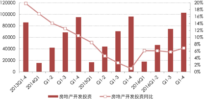 图1 2013年-2016年全国房地产开发季度累计投资情况 单位:亿元
