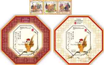 纵观各国在2017年前后发行的“鸡年”邮票,中国元素不仅是设计的主线条,也是折射中国传统文化的要素。在运用手法上基本上采用中国传统工艺、中国传统绘画手法和中国传统喜庆色彩等作为邮票的表现形式,很好地反映了生肖文化的内涵。我们在众多国家或地区发行的生肖邮票上,都或多或少能够感悟到这种根植于千百年来中国传统生肖文化的底蕴,集藏者可以在这些邮票上寻觅各具特色的“生肖”味。