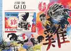 事实上,世界上许多国家都在中国农历春节前后发行生肖邮票,并已形成了自己邮票发行的系列。一些国家发行的生肖邮票更是别出心裁,像美国今年发行的“鸡年”生肖邮票就采用了中国传统的压岁红包作为主图,红包上的雄鸡则点出主题,“恭喜发财”的字样更是切合当今人们的心理,如此简单明确的设计思维具有突破性,颇值得借鉴。圣多美和普林西比的“鸡年”邮票则采用中国传统水墨画为基础,背衬斑斓的色块,似乎将西方的印象派风格应用其间,形成了中西交融的合璧效果,展现了文化交流的意图。菲律宾的2枚“鸡年”邮票采用了油画风格,一虚一实,一夸张一含蓄,形成对比,不过其发行的小型张却充满了中国元素,金鸡伫立中间,四周衬以吉祥图案与花卉,喜庆的红底色更是扑面而来。