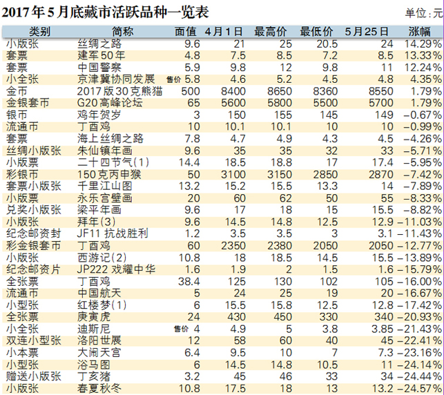 编者按:气温的徒然上窜,仿佛要早早终结今年的春天,让人在5月份尝尝初夏的滋味。伴随着新藏品的接踵而至,从4月中旬开始市场变得略显热闹,毕竟新品的不断亮相,多少还是吸引着藏家的眼球。不过,整个藏市的温度可没有气温那般上涨,低迷的氛围依然笼罩,毕竟市场大环境没有发生变化,绝大多数投资者如履薄冰,等待着邮币卡交易所清理整顿的结果,而这把达摩剑究竟怎样落下,无疑牵挂着所有参与邮币卡交易者的心,也制约着市场的走向。因此尽管新藏品透出诱人的魅力,但却对藏市的影响微乎其微。