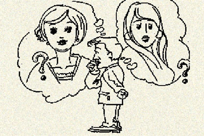 怎么选择?选小红,好处是养眼,但问题是她一直若即若离。选小橙吧,她对感情专一,性格也比较合拍,但问题是她态度不积极,如果表白,会有被拒绝的风险。