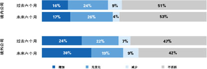 在受访的境外公司中,类似比例的公司表示其在境外发行了人民币债券,但是,相比境内公司,有更多的境外公司表示其打算在未来六个月增加人民币债券的发行。(图21)