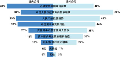 最常见的答案是,“进入中国在岸外汇市场的自由度”及“金融监管机构对现行的和即将发布的监管规定解释的清晰度”。