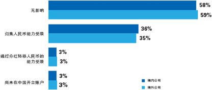 •  今年,58%的受访企业表示其并未感受到人民币贬值对其资金管理的影响,但也有 三分之一的受访企业认为人民币贬值给他们带来了直接影响