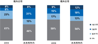 •  在未来两年,离岸人民币计价融资会在其融资总量中占据一定比例(2%或以上)的境内公司将从16%增至39%