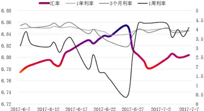 离岸人民币市场:上周离岸人民币汇率基本在6.8附近小幅震荡,各期限掉期点也基本保持稳定,市场流动性充足。上周五公布的6月末外汇储备数据连续第五个月增加,剔除资产重估等因素的影响,交易带来的外汇储备损耗几乎为零。预期未来一段时间人民币汇率仍然在6.7至6.9的范围内震荡。