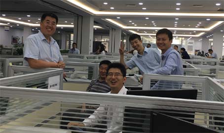 6月24日,信息技术部员工在指挥中心外庆祝成功上线。
