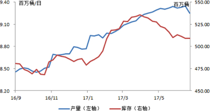 利比亚尼和尼日利亚都拥有减产豁免权,5月产量分别为73万桶/日和168万桶/日,创年内最大增幅。下半年,若继续增产,势必影响OPEC减产效果。目前两国国内仍存较大地缘政治风险,尤其是尼日利亚,一旦原油出口设施被反政府武装炸毁,原油供应中断,短期引发油价上升。