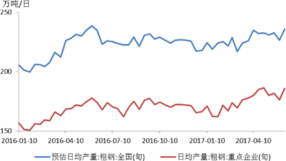 从产量情况来看,上半年钢铁产量持续走高,明显超出去年同期水平。1月以来,全国日均粗钢产量维持高位,并在二季度又上了一个台阶,这主要是受到重点钢企二季度钢产量明显增长的影响。虽然5月钢产量一度有所下滑,但6月产量再度攀升。