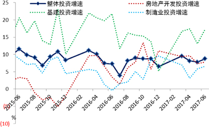 主要的风险因素仍在于金融环境,包括下半年剩余贷款额度有限、财政发文对地方政府融资的规范、金融去杠杆及监管对非标和债券融资的压制、存款派生放缓和银行资金面的紧张等,均可能对后期经济产生拖累。不过结合7月14-15日金融工作会议透露的信号,后期金融环境进一步收紧、金融去杠杆进一步加剧的空间已不大,金融环境将保持中性态势,且较前期边际放松,但在经济整体无忧情况下(从7月24日中共中央政治局会议对当前经济形势的研判看,政策层对经济的判断更加乐观且有信心,并强调保持政策的连续性和稳定性),政策显著放松的概率很低。不过四季度19大的召开,将加速改革落地,为经济增长注入一些新动力,提振私人部门的经济预期和景气度。综上,预计今年国内GDP实现6.7%及以上的增长仍然没有问题。(图1)