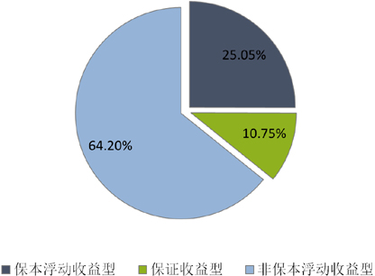 从收益类型来看,保证收益型产品发行了1066款,环比增加177款,市场占比上升1.09个百分点至10.75%;保本浮动收益型产品发行了2485款,环比增加60款,市场占比下降1.30个百分点至25.05%;非保本浮动收益型产品发行了6369款,环比增加481款,市场占比上升0.22个百分点至64.20%。(图1)