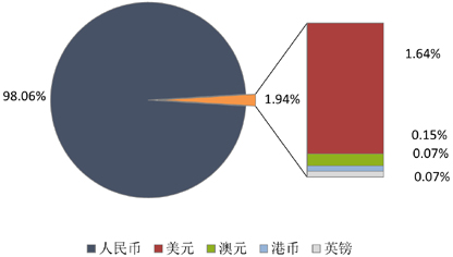 从投资币种来看,人民币产品发行了9728款,环比增加705款,市场占比上升0.01个百分点至98.06%;美元产品发行了163款,环比增加17款,市场占比上升0.06个百分点至1.64%;澳元产品发行了15款,环比减少4款,市场占比下降0.06个百分点至0.15%;港币产品发行了7款,环比增加3款,市场占比上升0.03个百分点至0.07%;英镑产品发行了7款,环比减少3款,市场占比下降0.04个百分点至0.07%。(图2)