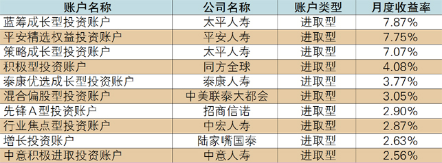 表2 2017年9月投连险投资账户收益表现TOP10