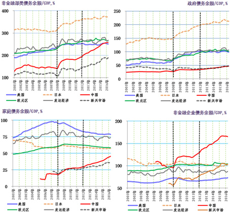因为,“三去一降一补”的宏观要求,实际上就是以降低实体经济杠杆率为核心内容,中国非金融部类杠杆率的整体下降;全球其他经济体则是家庭和实体经济加杠杆的同时,政府逐步降杠杆。言外之意,全球经济正处于杠杆率有增有减的结构性变化之中,由此中国降杠杆可能带来的冲击,就成为危机结束后,全球经济首先要面对的尾部风险。