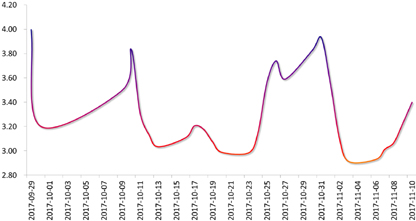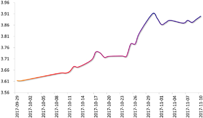 外汇市场:上周,客盘结售汇基本均衡,人民币走势平缓。特朗普访华和中国放开外资在金融业持股比例暂未直接影响汇市,人民币兑美元周五收于6.6400,当周累计下跌0.16%。短期内,人民币可能继续温和走贬。