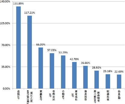收益表现最好的前十产品中,股票型和混合型各4款,债券型和FOF各1款。 (图10)