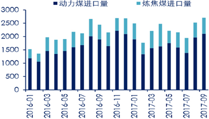 进口方面,为将去产能成果继续保留,政府控制劣质煤进口意图明显。今年主要通过延长进口煤通关时间和禁止部分口岸接卸进口煤等手段,通过放缓进口煤采购控制进口煤量。此外国际政治影响下,中国也停止进口朝鲜煤炭。虽进口煤炭绝对数量不大,但一旦出现较大幅度增减,会轻易打破原有供需平衡,进而影响价格,边际影响十分明显。(图2)