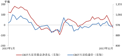 图9 CBOT大豆非商业持仓及收盘价的走势情况