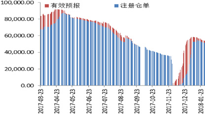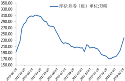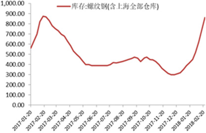 2017年12月中旬至2018年1月下旬,全国高炉开工率小幅回升至64%附近,2月份以来小幅回落至63.81%。粗钢日均产量与全国高炉开工率再度下降,尽管降幅不大,但显示出各地限产政策落实基本到位,导致2月份钢材现货价格坚挺,且在唐山等地非采暖季限产政策预期下明显上涨,而钢材期货价格受到金融层面影响回落后再度走高。