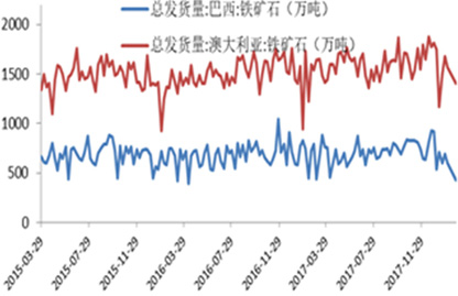 图3 巴西和澳大利亚铁矿石发货量(万吨)