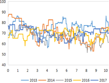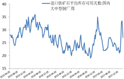 图4 国内大中型钢厂进口矿库存可用天数(天)