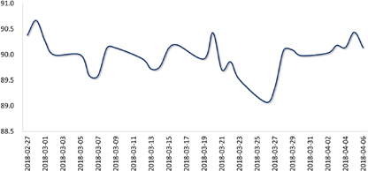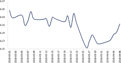 上周,美元指数先扬后抑:周初,因中美贸易紧张局势有所缓和,市场风险情绪改善,美元指数企稳回升;但随后,中美双方公布加征关税商品清单,贸易摩擦进一步升级,加之美国公布的3月非农就业数据不及预期,美元指数承压下挫,周五收于90.108,较前一周升值0.15%。人民币表现相对疲弱,人民币对美元即期市场收盘价连跌三日,4月4日收盘于6.2999,较前一周贬值0.42%。