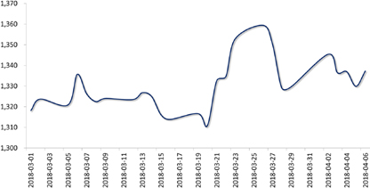 避险情绪引导了上周国际金价走势。周初,因中美贸易紧张局势有所缓解,避险情绪降温,带动金价从高位回落;4月4日,中美双方均公布了各约500亿美元的加征关税商品清单,贸易紧张局势再度升温,带动金价回涨,COMEX期金周五收于1337.50美元/盎司,较前一周上涨0.58%。