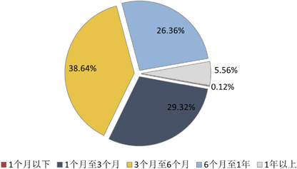 从投资期限来看,1个月以下产品发行了15款,环比增加7款,市场占比上升0.02个百分点至0.12%;1-3个月产品发行了3625款,环比增加1025款,市场占比下降2.57个百分点至29.32%;3-6个月产品发行了4778款,环比增加1478款,市场占比下降1.83个百分点至38.64%;6-12个月产品发行了3260款,环比增加1500款,市场占比上升4.78个百分点至26.36%;1年以上产品发行了687款,环比增加202款,市场占比下降0.39个百分点至5.56%。(图3)