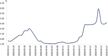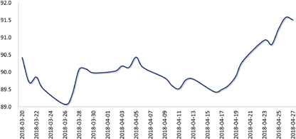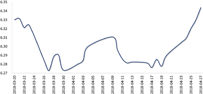 上周,受美债收益率上行和美国经济数据积极向好影响,美元指数强势反弹,一度逼近92关口,周五收于91.51,当周累计上涨1.31%。相应人民币承压下挫,日间收盘价连续六日下跌,周五收于6.3439,当周累计下跌0.85%,创2017年9月中以来最大周跌幅。但从美元指数反弹和人民币下跌幅度来看,人民币表现仍偏强,相应CFETS人民币汇率指数近期稳步上行。短期内,预计美元反弹将延续,人民币或仍有调整空间。