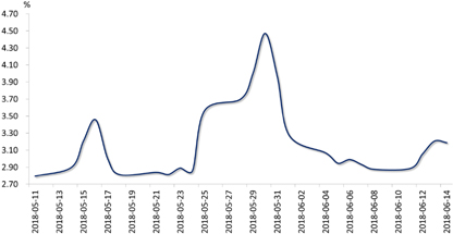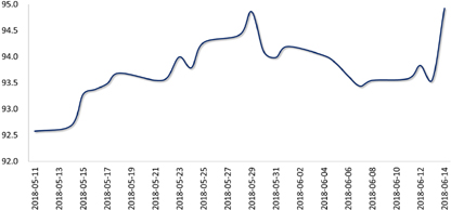 上周,美联储如期加息,并上调了对今年加息次数的预期,表达了对未来经济增长的信心,被市场解读为“鹰派”加息;相反,欧央行在货币政策声明中暗示将维持目前低利率水平至明年夏季。货币政策“一紧一松”的对比,带动美元指数快速上涨,再度逼近95关口;欧元则连续跌破多个关键点位,并创下2016年英国脱欧公投来最大单日跌幅。尽管美元维持强势,但在市场结汇需求支撑下,人民币仍小幅走强,上周四,人民币兑美元报6.3923,较前一周升值0.27%。