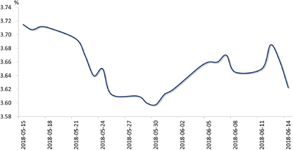债券市场:上周,因5月经济金融数据低于预期,人民银行未跟随美联储上调政策利率,加之一级市场招标结果整体向好,国债收益率下行。截至上周四,10年期国债收益率较前一周下行2BP至3.62%。