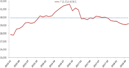 委内瑞拉受制于国内产能,减产执行率逐月提高,在5月马杜罗连任委内瑞拉总统后,美国以及欧洲等西方国家均表示将实施进一步制裁,未来产能可能持续下滑、按照2016年以来委内瑞拉产量平均降幅来推算,预计到年底,委内瑞拉产量将再度下降22万桶日。