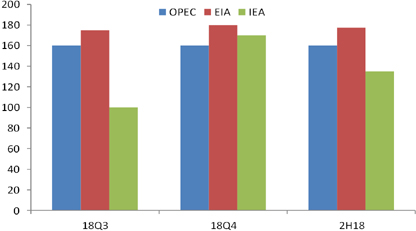3大机构对下半年需求增速预期略有分歧,EIA最为乐观,IEA相对保守。OPEC、EIA以及IEA对下半年需求增速预期分别为160万桶日,177.5万桶日以及135万桶日。(图2)