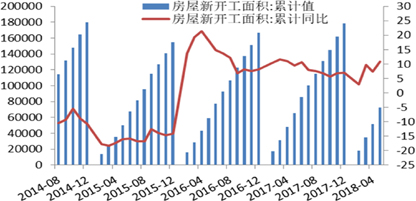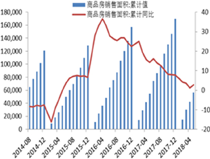 1-5月份商品房累计销售面积增长2.9%,房屋新开工面积增速10.8%,购置土地面积增速2.1%,分别较上月反弹1.6、3.5、4.2个百分点。在持续一年多的调控政策推动下,房屋销售持续下滑。当前银行的贷款利率大幅上升增加购房压力。其次,国家限制“银行-信托”的资管通道,势必从源头限制资金流入房地产,这些都造成房产销售下滑的因素。下半年,需要关注房地产税和棚改政策的推动。首先关于棚改的审核权限上归到国开行总行,必定影响后期三四线城市房地产的投资进度;其次关于房地产税的征收,市场一直盛传至久,近期有落地的迹象,如果房地产税实质落地对国内房地产行业必将产生深远影响。(图4)