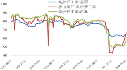 图9 全国、河北、唐山高炉开工率(单位:%)