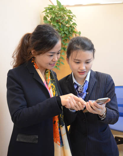 山东省济南章丘支行员工向客户讲解宣传金融科技“安心养老”APP功能及操作。■杨琳琳/摄