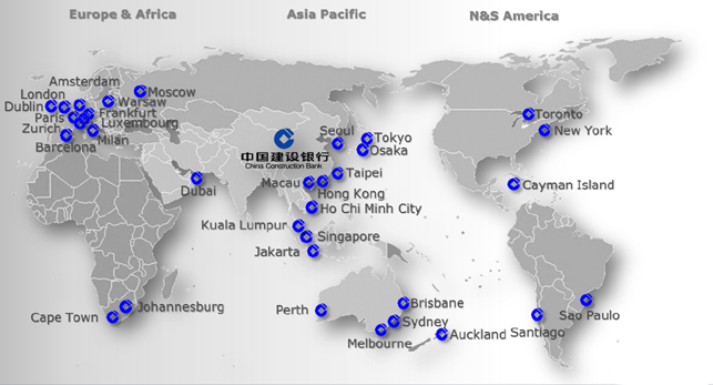 截至目前,建行网络布局已覆盖29个国家和地区,包括:香港、新加坡、德国、南非、日本、韩国、英国、美国、越南、澳大利亚、俄罗斯、阿联酋、台湾、卢森堡、澳门、新西兰、加拿大、巴西、法国、荷兰、西班牙、意大利、瑞士、爱尔兰、开曼、智利、印尼、马来西亚、波兰。