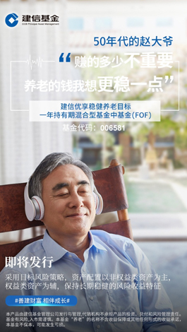 据了解,养老目标基金是指以追求养老资产的长期稳健增值为目的,鼓励投资者长期持有,并采用成熟的资产配置策略,合理控制投资组合波动风险的基金产品。目前公募养老目标基金主要分为目标风险策略和目标日期策略两种类别。建信优享稳健养老目标FOF采用目标风险策略,追求基金净值波动率与基金基准和投资目标的一致性,是目标风险系列养老产品中风险收益特征相对稳健的产品,契合投资者养老资产配置需求特点。投资策略上,建信优享稳健养老目标FOF将运用量化手段优化各类资产的配置比例,以及精选优质基金构建投资组合,进一步严控风险实现资产的稳步增值。