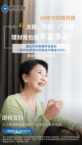 2018年3月,证监会发布《养老目标证券投资基金指引》,标志着公募基金将正式服务于公民养老事业。各家基金公司积极参与,申报相关产品累计已超50只。近日,这一重磅产品再度传来最新消息,第二批养老目标基金正式获批。其中,建信优享稳健养老目标混合型基金中基金(FOF)投资特色鲜明,该基金以多元资产配置为核心驱动力,以稳健的风险收益为目标,同时借助量化策略优化配置和精选基金,实现投资组合的风险分散和长期稳健增长。