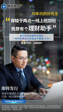 建信基金表示,养老目标基金在美国市场已非常成熟。从美国投资公司协会公布的数据来看,截至2017年底,诞生于上世纪90年代的美国目标日期基金规模已超过11160亿美元,来源于养老金的资金占比为87%,是过去十年最受投资者和退休计划发起人欢迎的产品。而在我国,养老目标基金未来发展前景广阔。随着社会老龄化程度持续加深,养老目标基金的“诞生”将充分发挥公募基金专业理财能力在居民养老投资中的作用,助力我国养老金第三支柱建设。未来,建信基金也将全方位参与我国公民个人养老事业,为投资者提供不同风险收益特征的养老目标产品,力争获取长期收益。