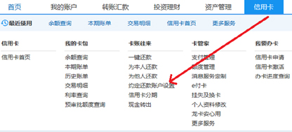95533答:如您已签约开通我行个人网银服务,即可登录个人网银,依次点击“信用卡-卡账往来-约定还款账户设置”,选择人民币/美元/欧元还款账户,点击“设置”,根据页面提示操作即可设置。