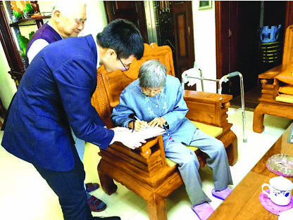 近日,在惠州某小区出现了温馨的一幕:一位行动不便且卧病在家的老人在其子女和银行员工的搀扶,在挂失承诺书签名处颤颤巍巍地签上了自己的名字,老人和他的子女握着两名银行工作人员的手连声道谢。
