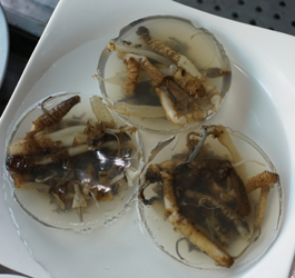想必这其貌不扬甚至有些让人恶心的家伙,一定在那些食物缺乏的年代,被哪位饿急眼了的闽南人先祖盯上,万般无奈下将这海边常见的东西纳入食谱,经过“烹煎煮炸”各种操作比较后而发明出的一种不但可吃而且好吃的新手法,于是“土笋冻”新鲜出炉,并且以它美味兼具怪异的外形牢牢地抓住厦门人以及游客的胃与“心”(好奇心),成为厦门当仁不让的“小吃”头牌。