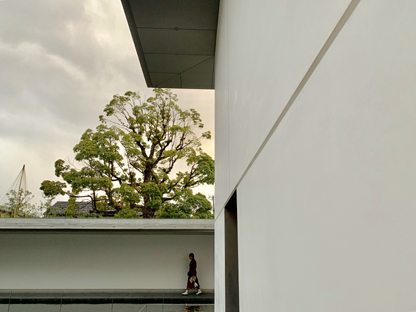 如此设计感的城市并不会缺少艺术的气息。由于曾经的富有,金泽拥有品种繁多的传统手工艺代表。金箔、漆器、九谷烧、和伞、加贺友禅,精美无比。很多工艺会社都有对外体验中心,于是我带回来一双不太漂亮的贴金箔的筷子,和一只相对还能看的莳绘漆盘。而现代建筑,更是金泽一大特色。惭愧讲,现代艺术中我最无法理解的就是建筑,不过到访铃木大拙纪念馆和21世纪美术馆后,我虽不能很好地具象描述其呈现的美感,但着实能感受到些许设计者的匠心。更妙的在于,同行小伙伴中,刚好有两位建筑设计师,回国后微信群里仍时不时更新着他们的思考。“日本住宅中同样也用最简洁的格栅,这种忽明忽灭的特质,让视线既不穿透也不停滞,这种最为亲民的材质形式表达最质朴的禅宗韵味。”“铃木大拙馆的思索空间的大悬挑薄檐,都是对日本传统建筑元素的浓缩与提炼,再通过精确的比例构成计算,尺度适宜,形体纯净。而21世纪美术馆,是用现代的手法,使用的是钢和玻璃,也体现了传统的日本格栅融入的感觉。”