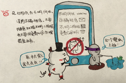 卡片信息保管牢,网站渠道选择好,短信链接休理会,陌生条码不能扫。