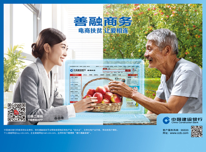 为响应国家精准扶贫号召,建设银行秉承“奔向美好生活的路上,一个都不能少”的社会责任理念,依托善融商务电商平台,构建“带上员工做公益、带着客户做公益、带动机构做公益、融合业务做公益”的新格局,因地制宜创新电商扶贫模式,变贫困地区农产品为商品、畅销品。